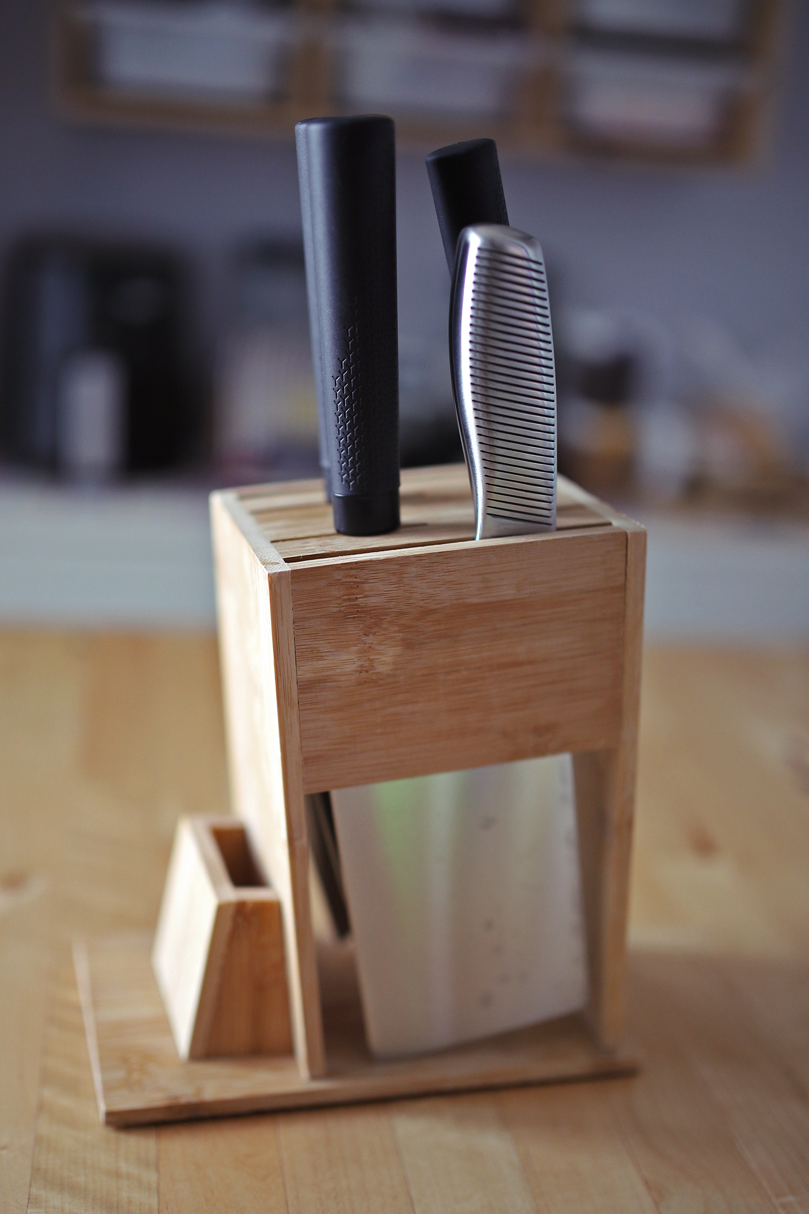오른쪽에 있는 세 개의 칼은 역시 이케아에서 구매한 또 다른 칼 '푀르슬라그'(3개 9900원)인데요. 손잡이가 고무재질입니다.