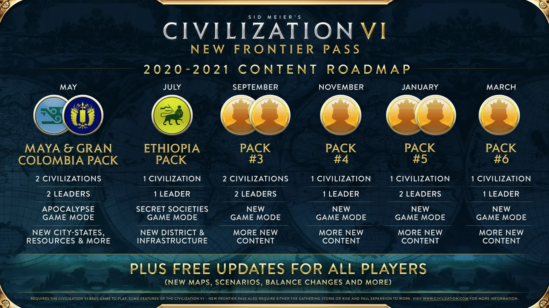 그런데! 며칠 전 갑작스러운 문명6 소식이 들려왔습니다. 바로 2020년 5월부터 2021년 3월까지, 2개월 간격으로 새로운 문명과 새로운 '게임모드'를 플레이할 수 있는 '뉴프런티어 패스'가 출시된다는 것이 그것이었죠.