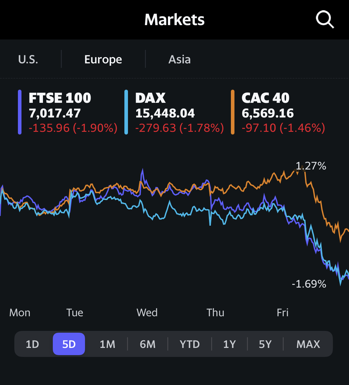 - 그러면서 금요일에 유럽 증시가 많이 빠졌다.