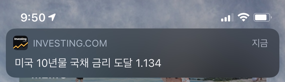 - 평소에 잘 쓰지 않던 Investing.com 앱에서 수요일 저녁에 갑자기 알림이 뜨더라.