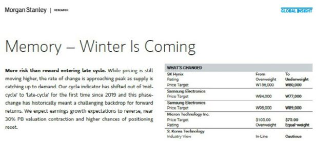- 모건 스탠리가 '반도체 겨울이 온다'라고 말하긴 했지만, 뭐 걔네가 잘 맞춘다고 생각해본적이 없다. 반도체 호황 온다고 본다.